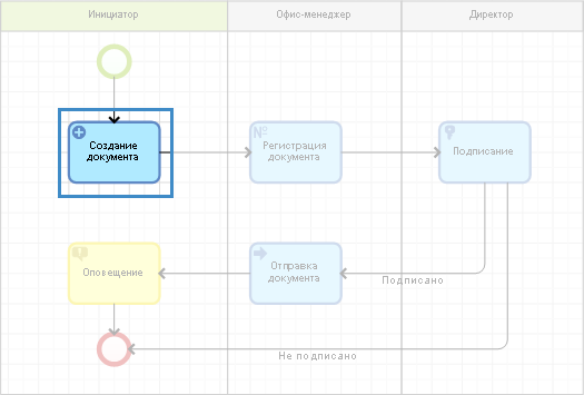 Рис. 1. Операция "Создание документа" на графической модели процесса
