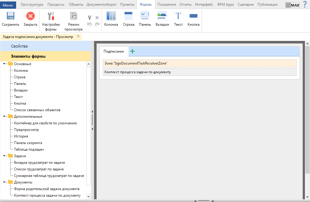 Рис. 9. Дизайнер ELMA. Форма задачи подписания документа