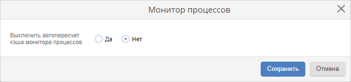 Рис. 3. Диалоговое окно редактирования параметров в блоке "Монитор процессов" с отключенным автопересчетом кэша
