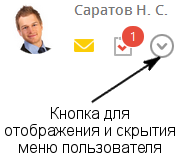 Верхнее меню содержит в себе еще один вид меню – меню пользователя. Для того, чтобы развернуть данное меню, наведите указатель мыши на кнопку раскрытия и нажмите на нее.