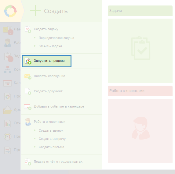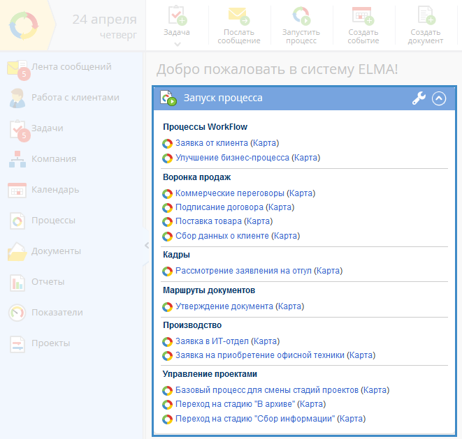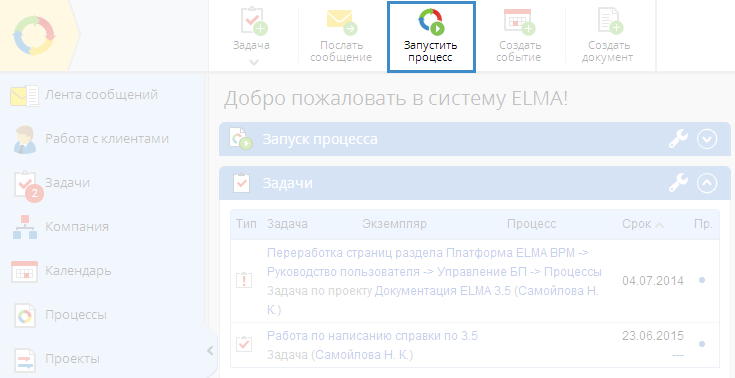 В веб-приложении ELMA можно запустить процесс тремя способами: