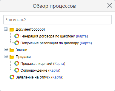 Если Вы затрудняетесь в выборе нужного процесса исходя из названия, то можно посмотреть карту процесса, щелкнув мышью по надписи Карта рядом с названием процесса. Карта процесса откроется в новой вкладке интернет-браузера.