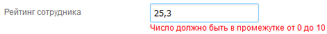 Рис. 4. Поле типа "Дробное число" в веб-приложении (форма редактирования). Уведомление о вводе неверного значения