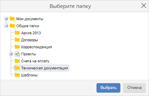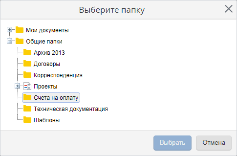 окно (рис. 2), содержащее дерево папок, в котором необходимо выбрать интересующую папку. В дереве папок будут отображаться все папки, к которым у текущего пользователя имеются права доступа не ниже