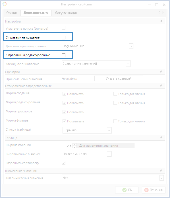 права доступа уровня Создание документов и/или