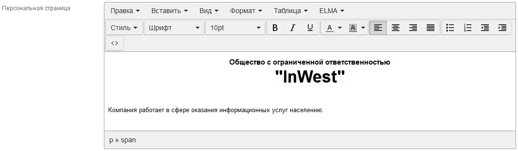 Рис. 1. Поле типа "HTML-разметка" в веб-приложении (форма редактирования)