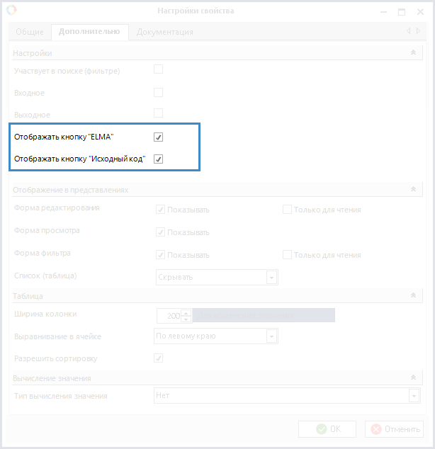 Отображать кнопку "ELMA" –при установленном флажке в веб-приложении в режиме редактирования поля типа HTML-разметка будет доступна кнопка ELMA(рис. 4).