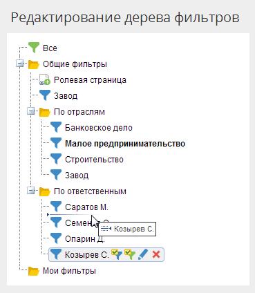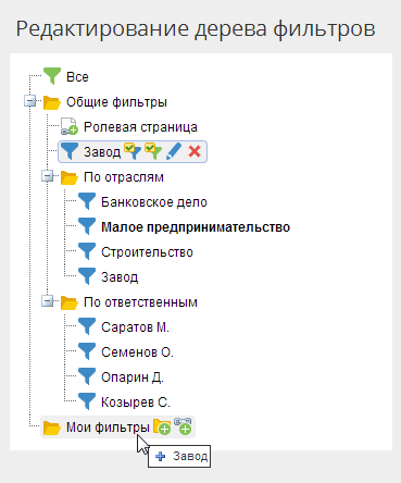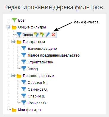 открыть страницу редактирования дерева фильтров (рис. 2), нажав кнопку Изменить (рис. 1);