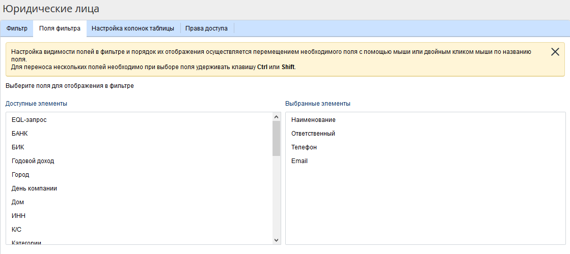 Рис. 7. Карточка фильтра. Вкладка "Права доступа"