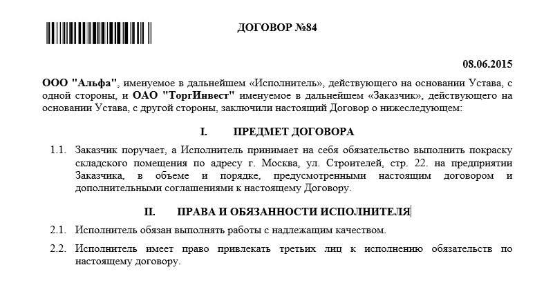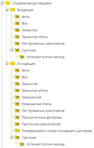 Рис. 1. Раздел "Управление договорами" в папке "Документы"