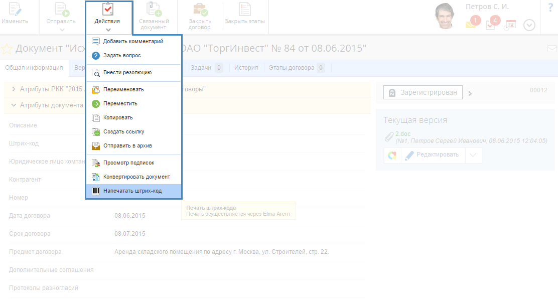 Приложение Штрих-кодирование документов позволяет организовать штрих-кодирование документов в системе ELMA (рис. 1).