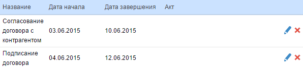 Рис. 7. Таблица отображения данных об этапах договора в карточке договора
