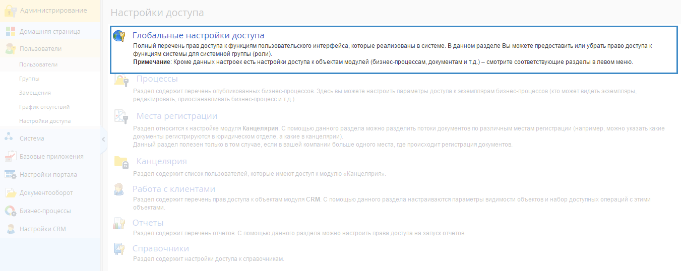Рис. 2. Раздел " Администрирование – Пользователи – Настройки доступа – Глобальные настройки доступа"