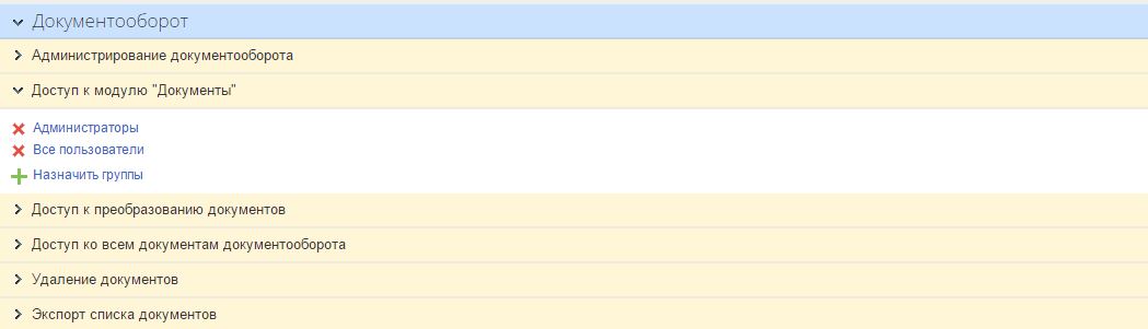Рис. 3. Настройка прав доступа к модулю "Документооборот"