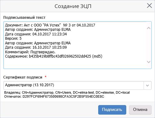 Возможность подписания версий документов в системе ELMA доступна только при наличии активированного приложения ECM+, а также при выполнении соответствующих настроек.