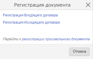 При регистрации документов необходимо указывать много параметров. Для простоты можно сделать «ссылки» с предопределенными параметрами регистрации (например, сделать ссылку «Письмо входящее» и задать для этой ссылки заранее набор параметров). Объединив набор ссылок в документ, можно получить удобный интерфейс регистрации документов.