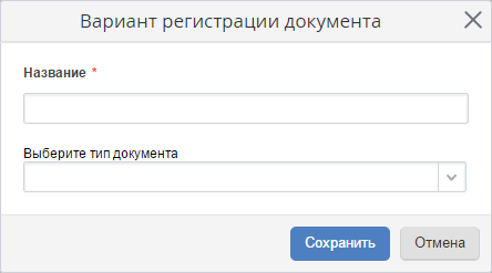 Выберите тип документа – из выпадающего списка необходимо выбрать тип документа, для которого создается вариант регистрации.