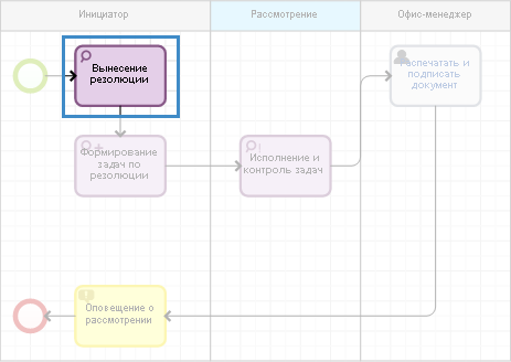 Настройка исходящего перехода из операции Вынесение резолюции аналогична настройке перехода из операции Отправка на согласование.
