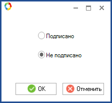 Рис. 4. Окно выбора статуса исходящего перехода из операции "Подписание"
