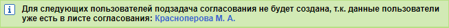 Рис. 6. Уведомление о наличии пользователя в листе согласования