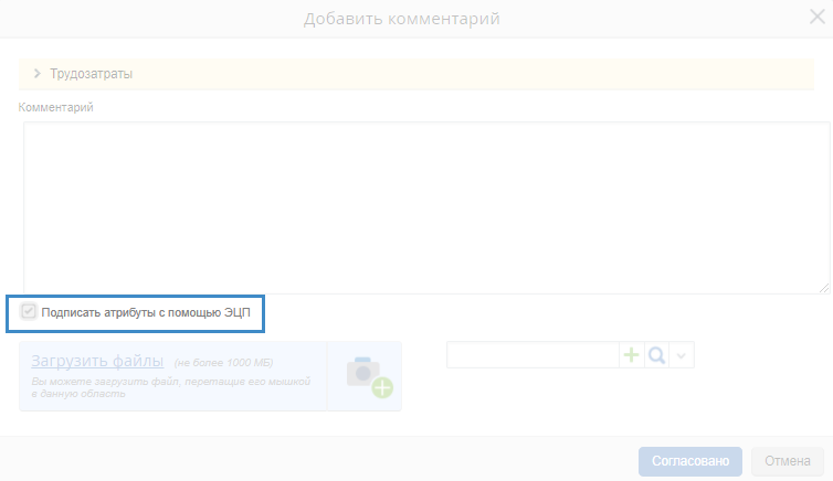 Нажатием этой кнопки пользователь обозначает начало работы над задачей. В открывшемся при нажатии окне при необходимости можно ввести комментарий и загрузить файл. Использование данной кнопки остается на усмотрение пользователя.