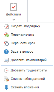 Добавить трудозатраты – позволяет добавить трудозатраты, затраченные на данную задачу;