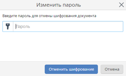 Рис. 10. Окно ввода пароля для отмены шифрования документа