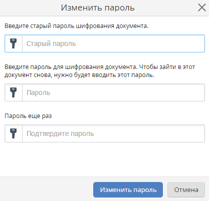 Для изменения пароля для доступа к зашифрованному документу необходимо: