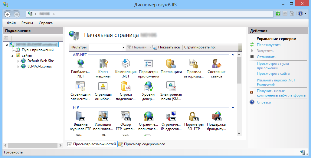 открыть раздел Пуск – Панель управления – Администрирование – Диспетчер служб IIS. Будет открыто окно Диспетчер служб IIS (рис. 1);