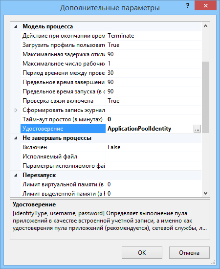 в открывшемся окне (рис. 3)в блоке Модель процесса выбрать пункт Удостоверение и нажать на кнопку . Будет открыто окно Удостоверение пула приложений (рис. 4);