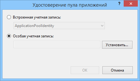 в открывшемся окне (рис. 5) следует ввести необходимые учетные данные и нажать на кнопку ОK. Закрыть окна Удостоверение пула приложений и Дополнительные параметры нажатием на кнопку ОК.