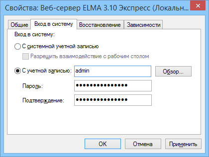 В случае, если система ELMA использует в качестве веб-сервера локальный сервер Cassini, то для запуска сервера ELMA от имени определенного пользователя Windows необходимо: