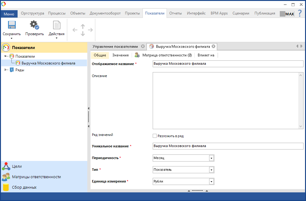 Рис. 1. Карточка показателя. Вкладка "Общие"