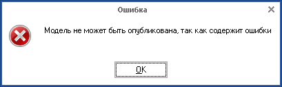 Уникальное название * – уникальное системное название показателя. Используется в формулах вычисления значений показателя на вкладке Значения. Данное поле заполняется автоматически при заполнении поля Отображаемое название *, при необходимости может быть заполнено вручную. Данное поле является обязательным для заполнения. Следует отметить, что уникальное название может содержать только следующие символы: буквы русского и английского алфавита, цифры, пробел (не должен быть первым символом), знак нижнего подчеркивания. При публикации модели, в которой присутствует показатель, уникальное название которого содержит недопустимые символы, будет отображена ошибка (рис. 3):
