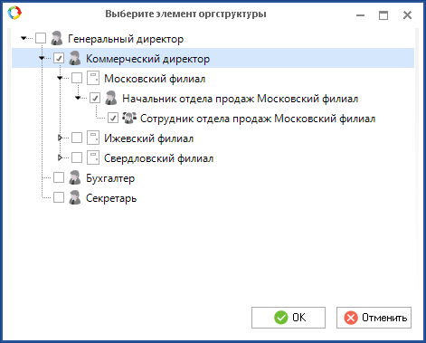 Рис. 4. Окно выбора элемента оргструктуры
