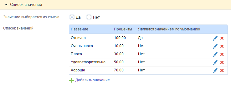 По умолчанию в справочнике содержатся две записи: Проценты и Баллы. При необходимости могут быть добавлены любые единицы измерения, необходимые для работы.