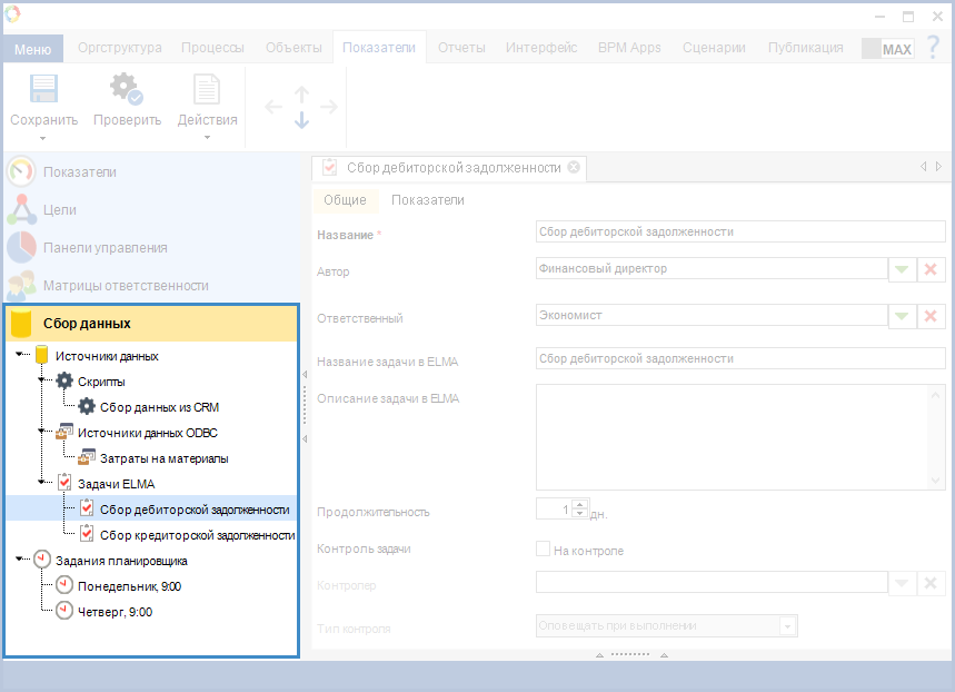 Приложение ELMA KPI позволяет настроить сбор данных по значениям показателей из внешних источников.
