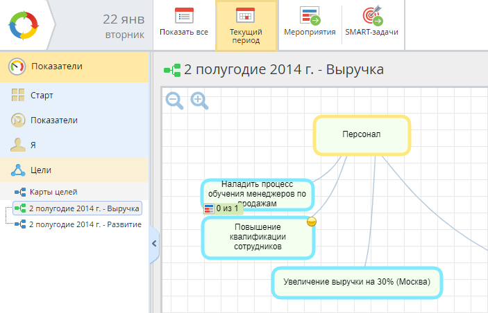 При удалении цели все SMART-задачи и Мероприятия, относящиеся к ней, останутся в системе.