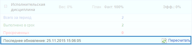 Пересчитать в правом нижнем углу группы (рис. 8). После этого будет сгенерировано информационное сообщение о дате и времени последнего обновления;