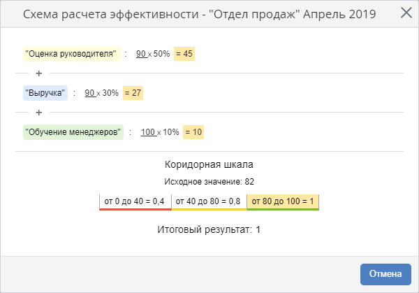 Рис. 9. Диалоговое окно расчета эффективности. Коридорная шкала