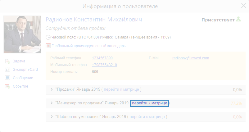 Рис. 4. Карточка пользователя. Ссылка "перейти к матрице"