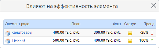 Рис. 7. Диалоговое окно "Влияют на эффективность элемента"