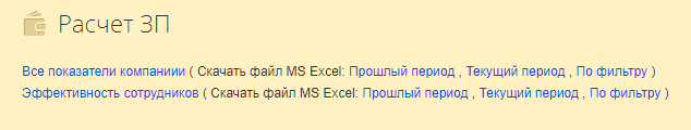Выгрузка списка показателей и эффективности сотрудников в файл MS Excel