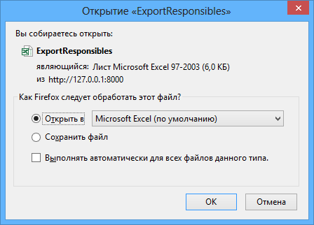 Следует отметить, что веб-браузер Google Chrome версии 44.0.2403 и выше автоматически запускает скачивание сформированного файла без открытия диалогового окна, представленного на рис. 3.