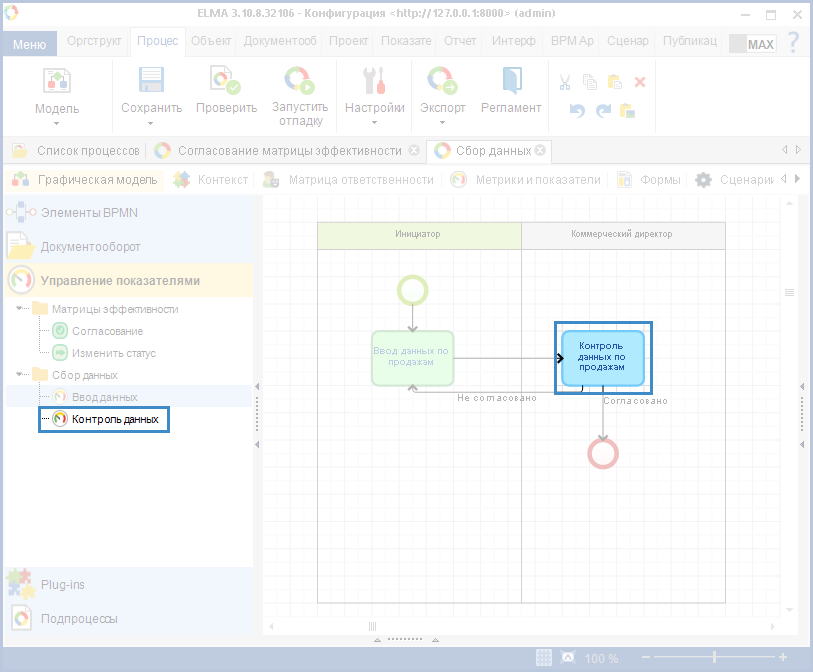Операция Контроль данных доступна в том случае, если активировано приложение ELMA KPI.