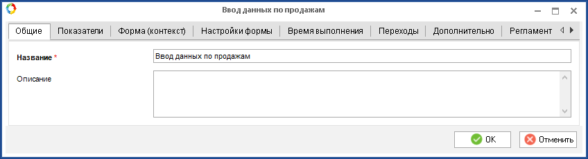 Рис. 8. Диалоговое окно настройки операции "Ввод данных". Вкладка "Общие"