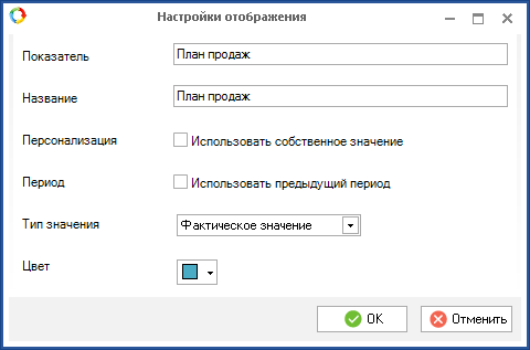 Период – при установке данного флажка для отображения значения показателя будет использован предыдущий период (по умолчанию для отображения значений показателя используется текущий период).