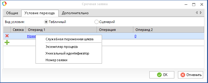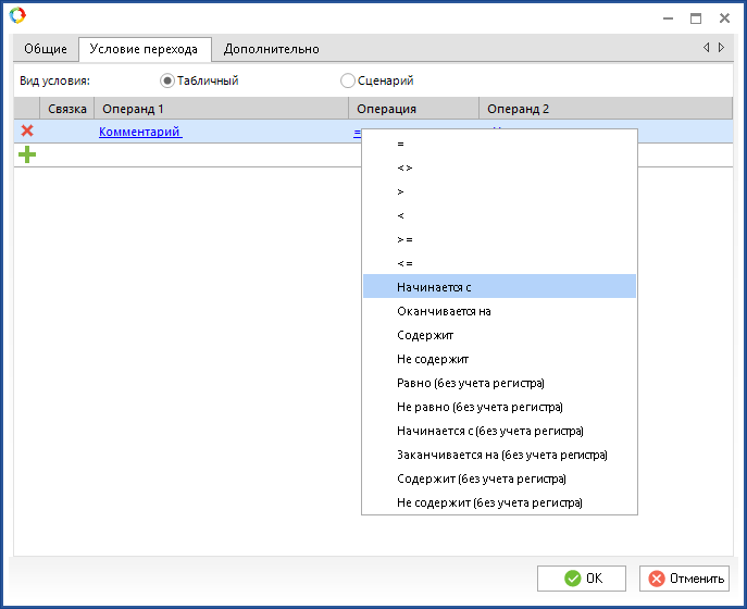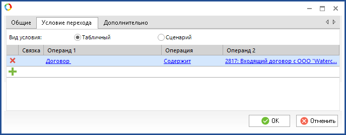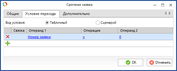 Рис. 2. Вкладка "Условие перехода". Табличный вид условия