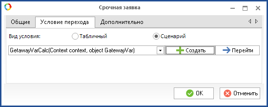 Рис. 6. Вкладка "Условие выполнения". Вид условия Сценарий