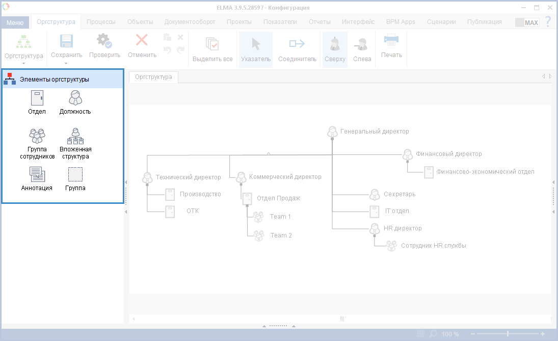 Кнопка Сохранить позволяет сохранить изменения, внесенные в модель оргструктуры. Изменения вступают в силу после публикации модели.
